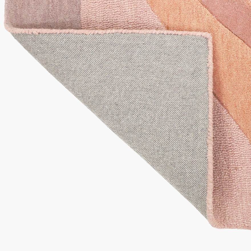 Håndtuftet i 100% ull, bakside av resirkulert bomull.