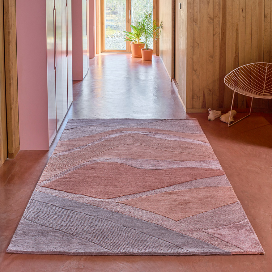 Agnes er et eksklusivt designteppe håndtuftet i ull med innslag av viskose. De vakre rosatonene, kombinert med høy og lav luv, skaper raffinerte kontraster som gir teppet et moderne og sofistikert uttrykk. Det delikate mønsteret, inspirert av naturlige fjellformasjoner, tilfører rommet en kunstnerisk og elegant dimensjon. Skap et designhjem med Agnes – et designteppe som løfter interiøret! Som med alle håndlagde tepper kan det forekomme små variasjoner i farge og størrelse, noe som gjør hvert teppe unikt.